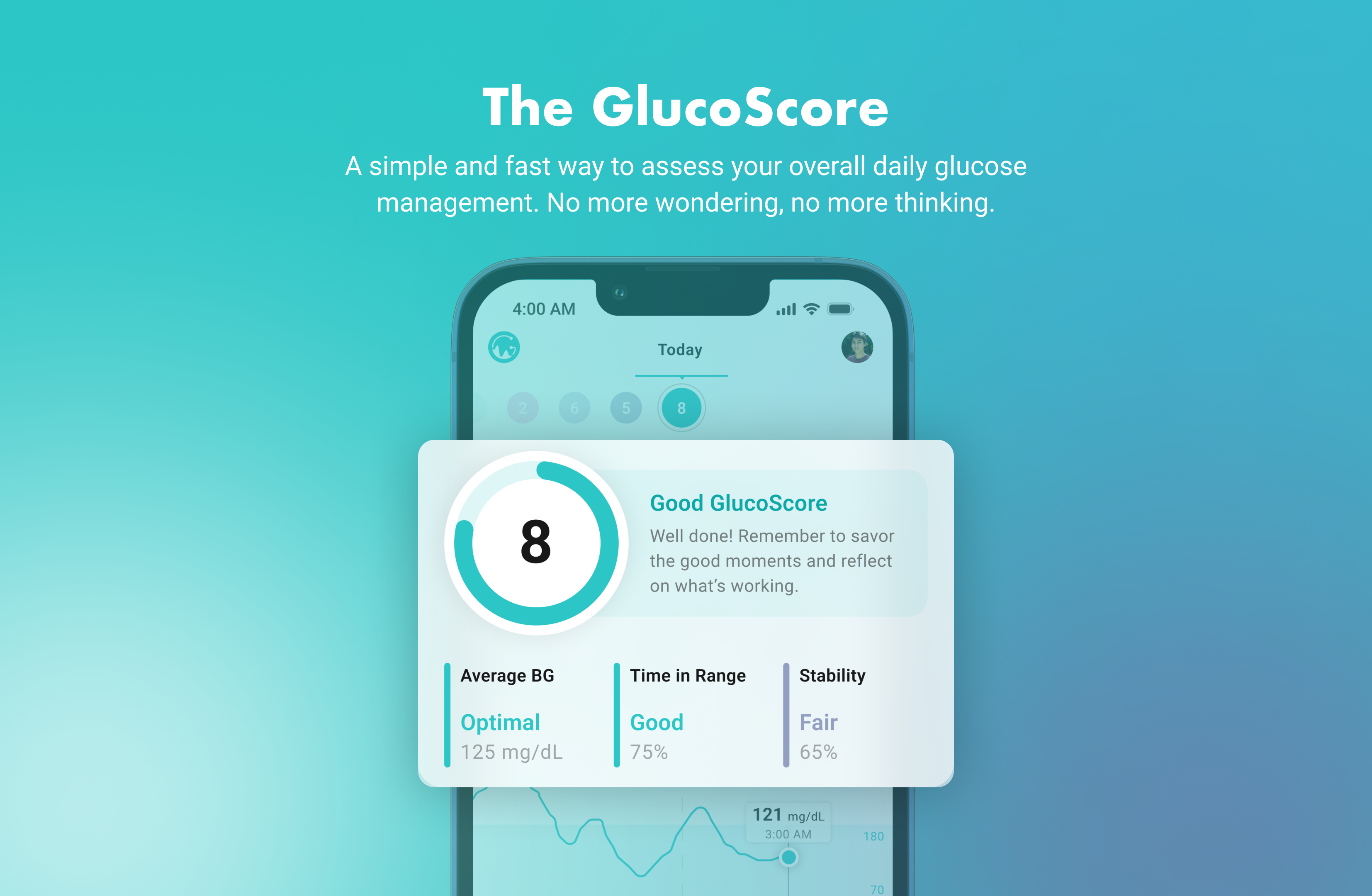 GlucoScore is an innovative feature within the GlucoSense app that provides a clear, easy-to-understand snapshot of your overall blood sugar management. Unlike A1C, which only provides an overview of your average over three months, GlucoScore offers a more personalized and immediate reflection of how well you're managing your glucose levels. A1C is limited—it doesn't capture the daily highs and lows, the unpredictability, or the stress of managing diabetes on a day-to-day basis. Waiting three months to see how you're doing can make it difficult to understand what changes are needed right now. And without that granularity, it’s hard to have meaningful, personalized conversations about what’s working and where there’s room for improvement. We created GlucoScore to address these challenges and provide more actionable insights. It's not just a number; it's a tool to help you understand your glucose management in a way that makes sense for your daily life. Below, we’ll talk about how you can use the GlucoScore and what it means.