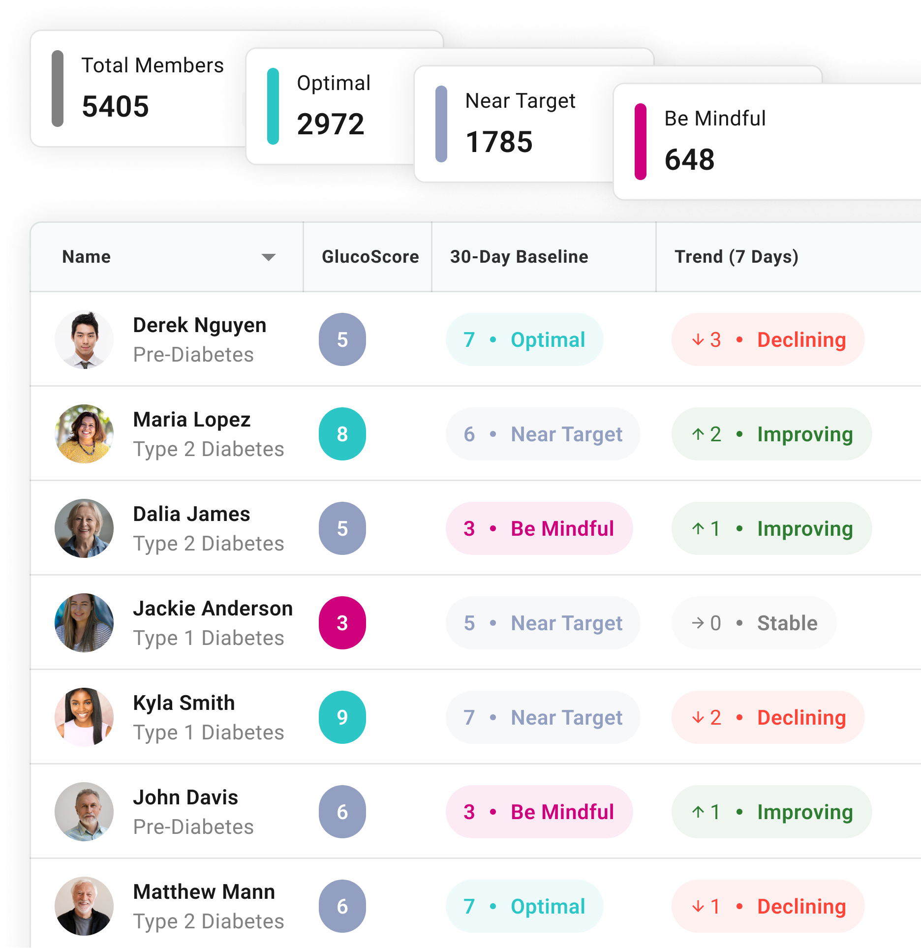 See who's improving and who needs support across your entire diabetes population, continuously updated in one simple view.